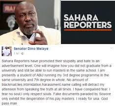 SaharaReporters, had in a report alleged that Melaye did not complete his first degree in Geography at Ahmadu Bello University, Zaria.