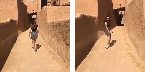 She had been filmed walking through the historic fort of Ushaiqer, north of Riyadh, and playing with sand in the dunes.